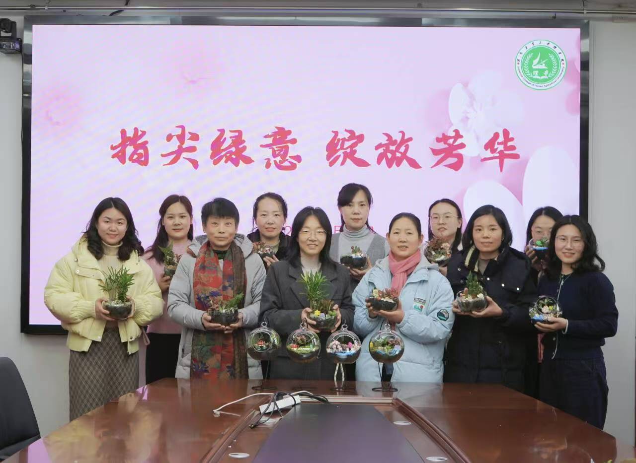 本网讯(通讯员 卢纯 王冰怡)为庆祝“三八”国际妇女节,丰富女教师精神文化生活,3月6日下午,我院在文化路校区18号楼319会议室举办“指尖绿意,绽放芳华”主题DIY活动,学院女教职工参加。