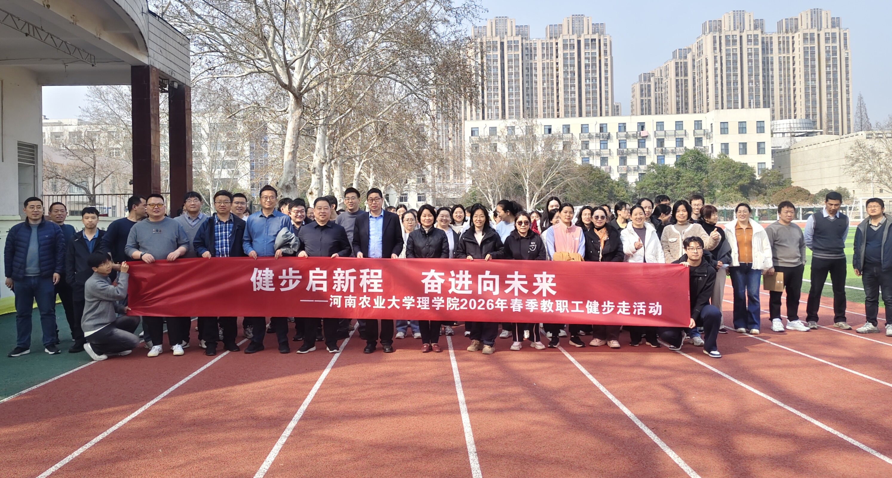 本网讯(通讯员 卢纯 王冰怡)为营造奋进向上、团结融洽的学院氛围,3月10日下午,我院于文化路校区田径场举办以“健步启新程,奋进向未来”为主题的春季教职工健步走活动,理学院全体教职工积极参与,共赴春日活力之约。